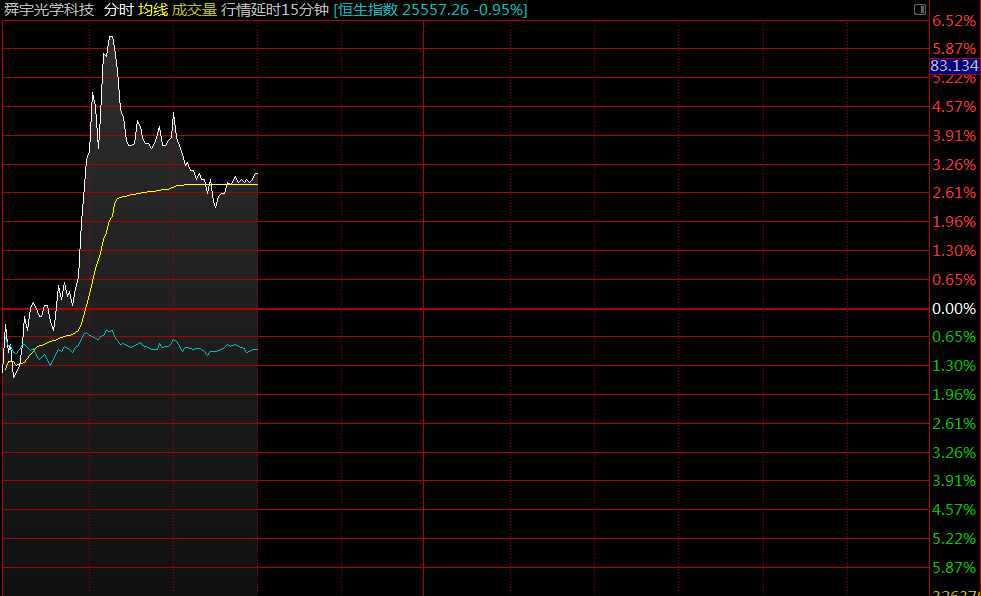 智通財(cái)經(jīng)APP獲悉,9月手機(jī)鏡頭出貨量同比增61%,舜宇光學(xué)(02382)早盤股價(jià)直線拉升,截至10時(shí)07分,漲6.08%,報(bào)價(jià)83.75港元,成交額2.68億。