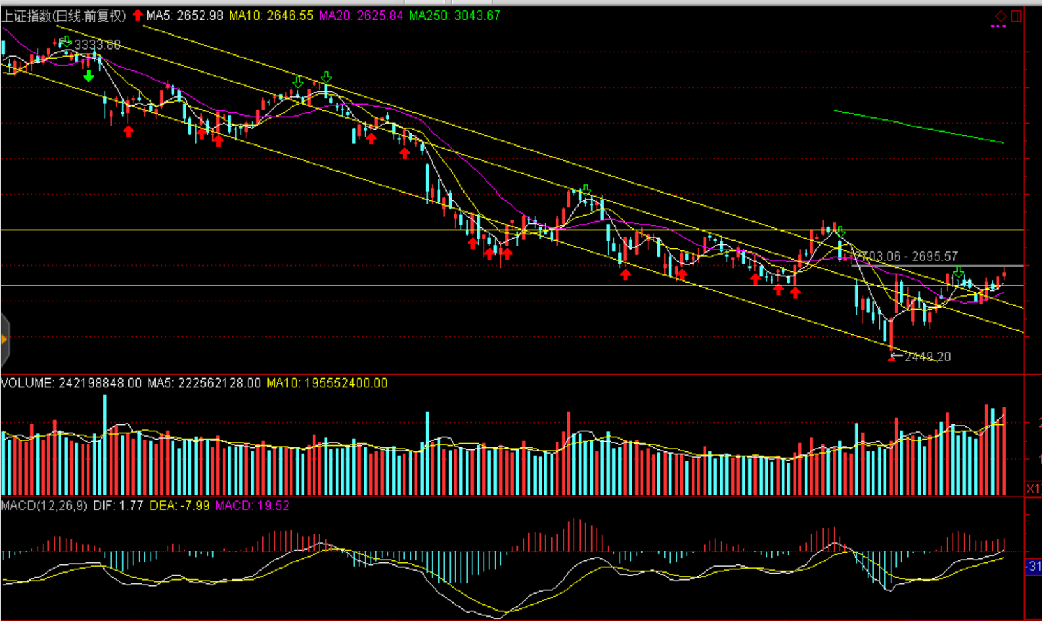 技術(shù)面:上周周線量價(jià)配合震蕩上揚(yáng)趨勢,自10月19日見底以來運(yùn)行21個(gè)交易日,短期指數(shù)仍有反復(fù)上揚(yáng)需求,本周20周均線面臨壓力(滬綜指2700點(diǎn)一線、創(chuàng)業(yè)板1430點(diǎn)一線)。