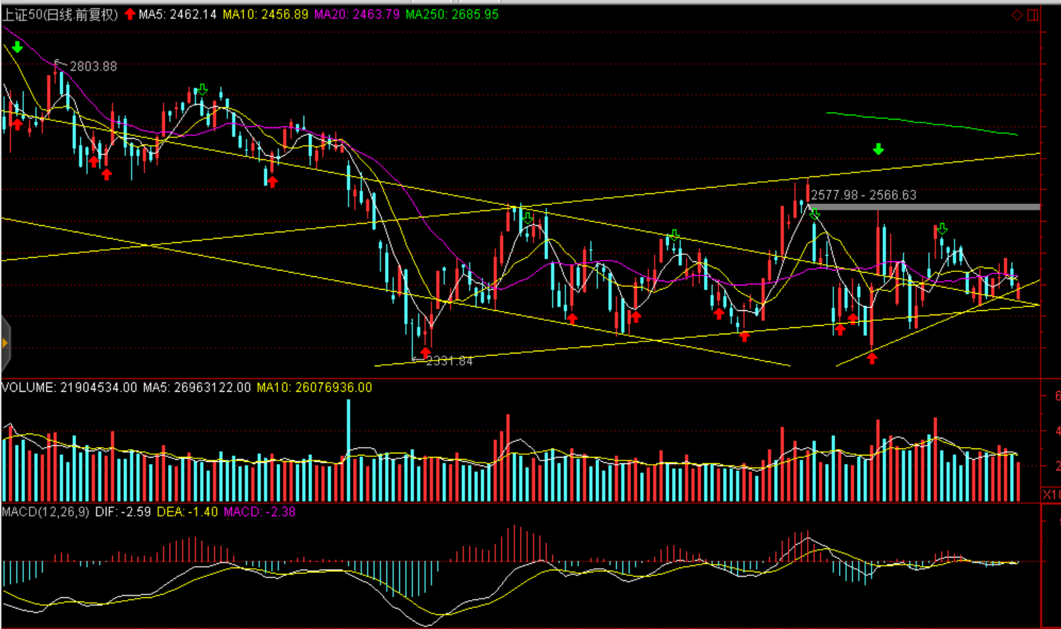 技術(shù)面:短期企穩(wěn)反彈,上證50于2520點一線、滬綜指2723點一線、創(chuàng)業(yè)板1412點一線面臨短期壓力。
