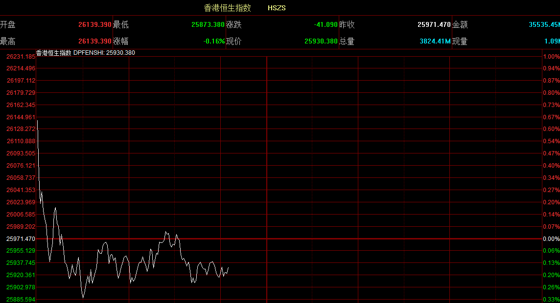 智通財(cái)經(jīng)APP獲悉,恒生指數(shù)開盤漲0.65%,報(bào)26139.39點(diǎn)。國(guó)企指數(shù)漲0.39%,報(bào)10526.58點(diǎn)。紅籌指數(shù)漲0.16%,報(bào)4272.91點(diǎn)。大市盤前成交12.23億港元。