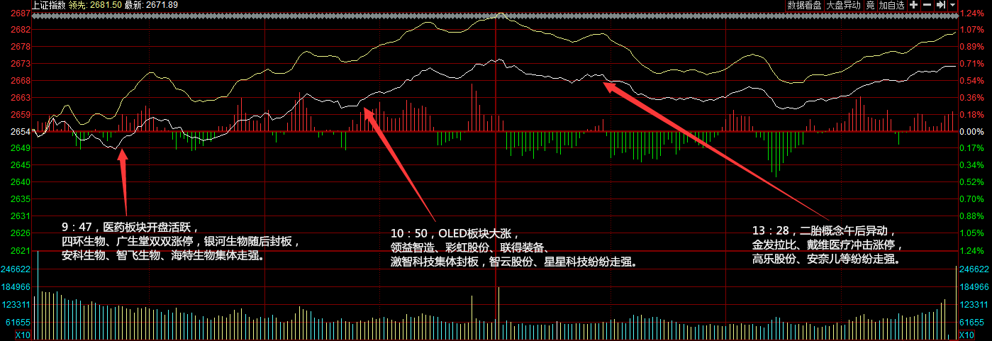云財(cái)經(jīng)訊,兩市今日平開(kāi),隨后在醫(yī)藥、次新股的帶領(lǐng)下,創(chuàng)業(yè)板快速走強(qiáng),而主板表現(xiàn)較為弱勢(shì)。午后兩市稍有回落,工業(yè)大麻、柔性屏等板塊輪番拉升,市場(chǎng)總體賺錢(qián)效應(yīng)不錯(cuò)。個(gè)股漲多跌少,今日漲停75家,跌停1家。板塊普漲,OLED、醫(yī)藥、天津自貿(mào)區(qū)、氟化工等板塊漲幅居前。截止收盤(pán),滬指報(bào)2671點(diǎn),漲0.68%;深成指報(bào)8010點(diǎn),漲1.15%;創(chuàng)業(yè)板指報(bào)1332點(diǎn),漲1.23%。兩市成交較前一交易日放量。