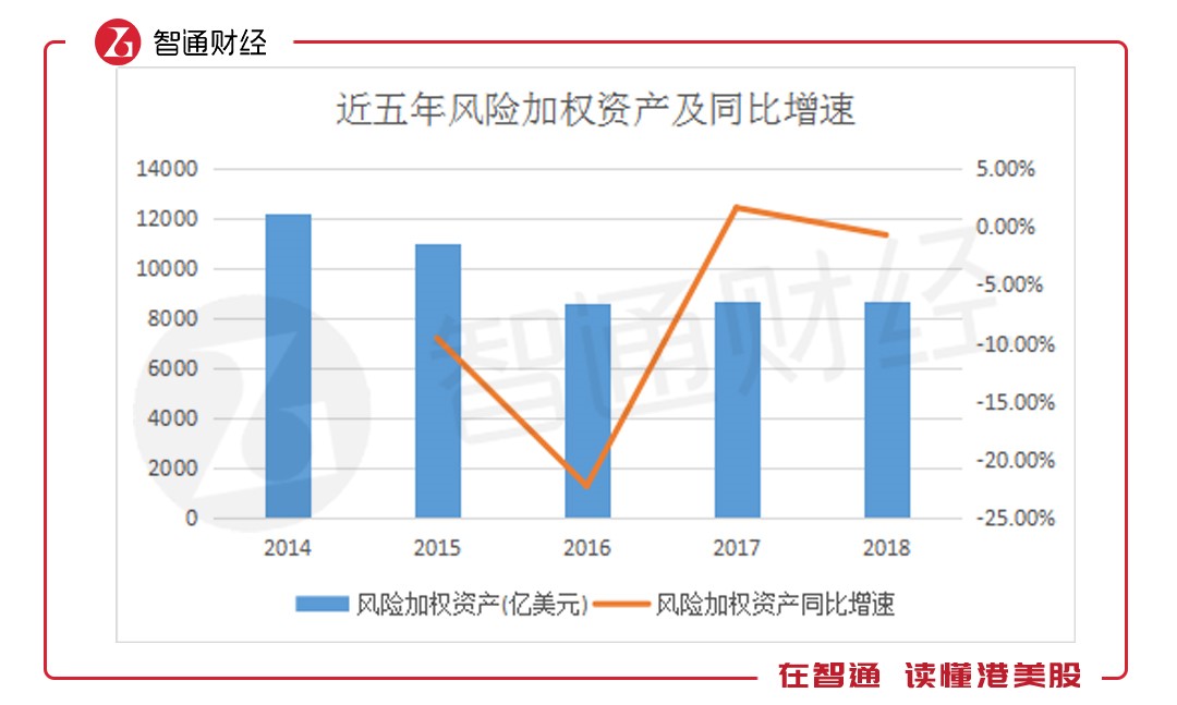 風(fēng)險(xiǎn)加權(quán)資產(chǎn)方面表現(xiàn)與總資產(chǎn)類似,于2017年大幅增長,至去年有所回落。據(jù)智通財(cái)經(jīng)APP了解,2018年,匯豐控股風(fēng)險(xiǎn)加權(quán)資產(chǎn)達(dá)8653.18億美元,同比下降0.69%。