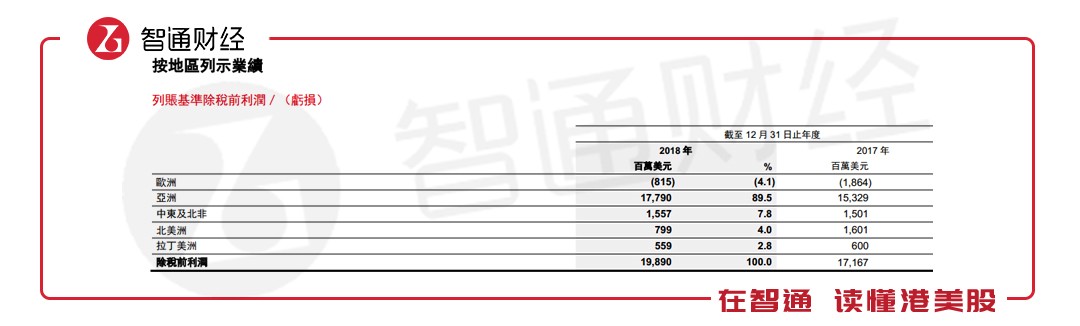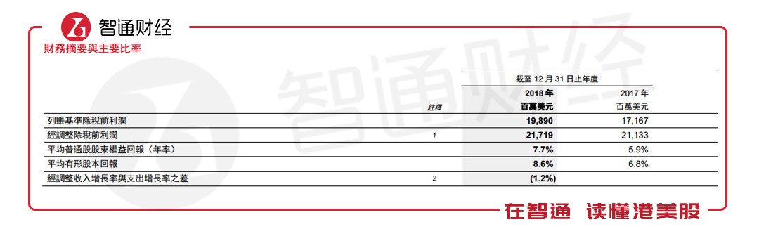 列賬基準(zhǔn)除稅前利潤為199億美元,較2017年增加16%。經(jīng)調(diào)整除稅前利潤為217億美元,同比增長3%。