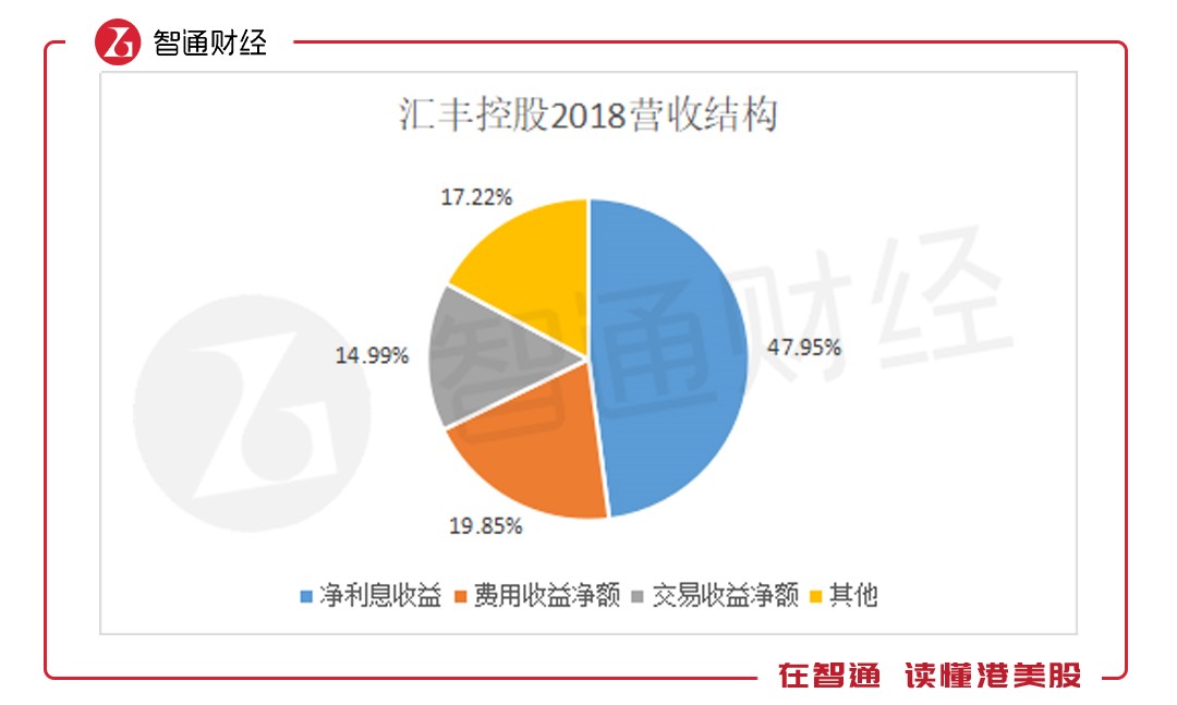 智通財(cái)經(jīng)APP觀察到,匯豐控股雖作為混業(yè)經(jīng)營銀行,但就營收結(jié)構(gòu)來看,凈利息收益率仍為其最主要業(yè)務(wù),占比高達(dá)47.95%,較2017年增長逾3個(gè)百分點(diǎn)。其余三項(xiàng)營收占比則較上一財(cái)年更加均勻。