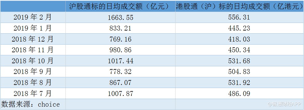 伴隨著股市上漲的,是兩地資本互通的熱度。據(jù)智通財經(jīng)APP統(tǒng)計,北上資金方面,2019年2月,滬(深)股通標的日均成交額分別為1663.55億、1997.6億;南下資金方面,滬(深)港股通日均成交額分別為556.31億、598.36億,均相較于其他月份顯著放大。