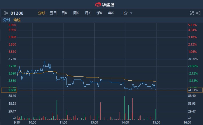 五礦資源(01208)今日震蕩走低,截至14時(shí)57分,跌4.51%,報(bào)3.6港元,成交額達(dá)4480萬港元。