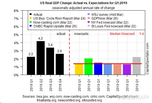 周四最新出爐數(shù)據(jù)顯示,美國去年第四季度GDP放緩程度超預(yù)期,終值年化季環(huán)比增速下修至2.2%。據(jù)預(yù)估數(shù)據(jù)顯示,2019年第一季度美國GDP數(shù)據(jù)可能會繼續(xù)下滑,即或?qū)⑦B續(xù)三個(gè)季度下跌。