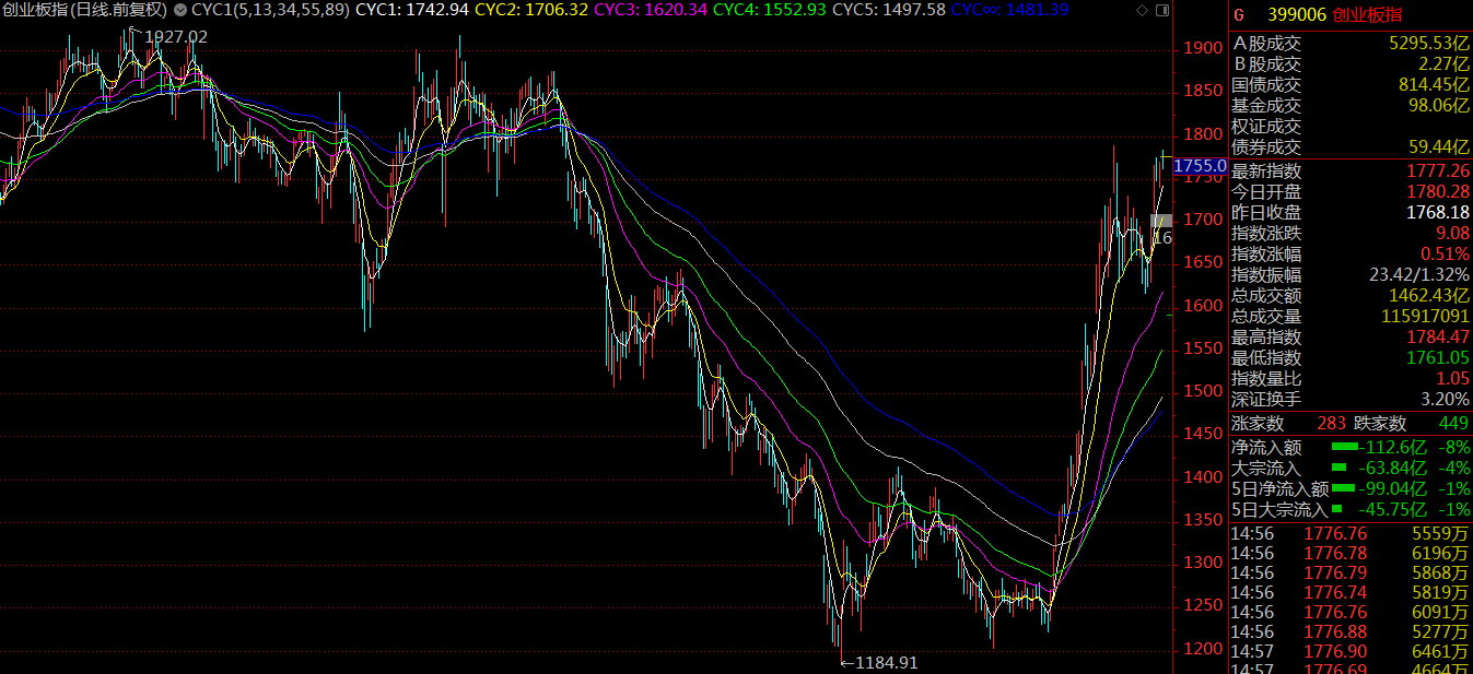 創(chuàng)業(yè)板走勢(shì)稍稍弱于主板,本周關(guān)注創(chuàng)業(yè)板能否新高,以及1719點(diǎn)的支撐力度。