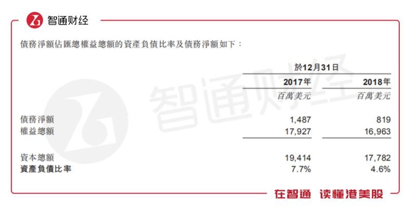 好在公司債務凈額在2018年已經從2017年的14.98億元下降至8.19億元,而債務凈額占匯總權益額的資產負債比率也由7.7%降至4.6%。