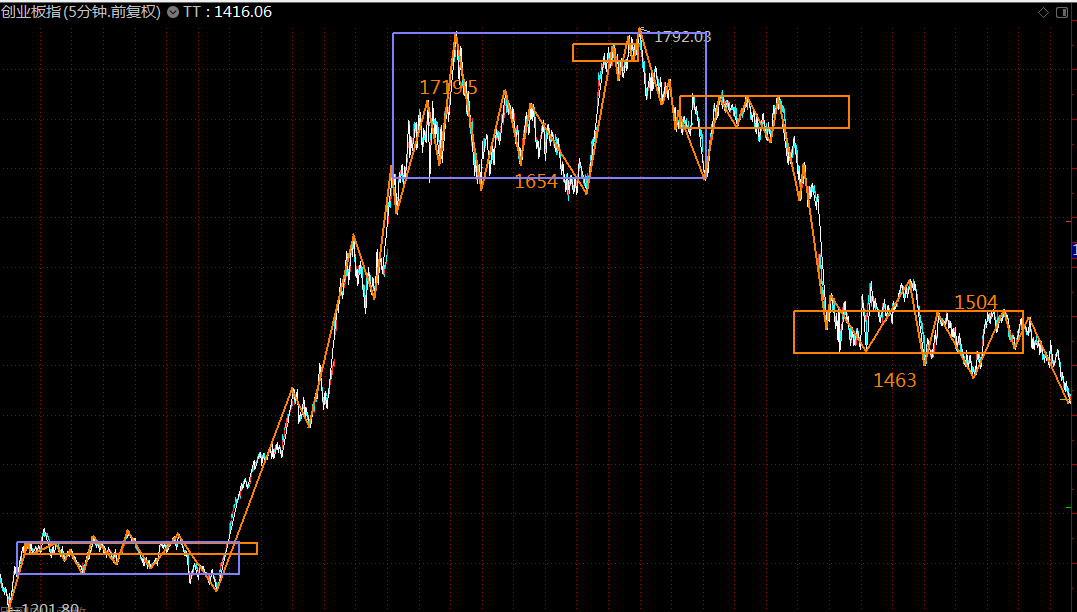 下圖為上證指數(shù)五分鐘級別走勢結(jié)構(gòu)。短線看,上證指數(shù)這段從2934點開始的回落線段,已進入空頭陷阱區(qū)域,本周初將完成下方五分鐘中樞的第一類買點構(gòu)造,突破2940點之后,上漲趨勢將開啟,目標3050-3100之間。