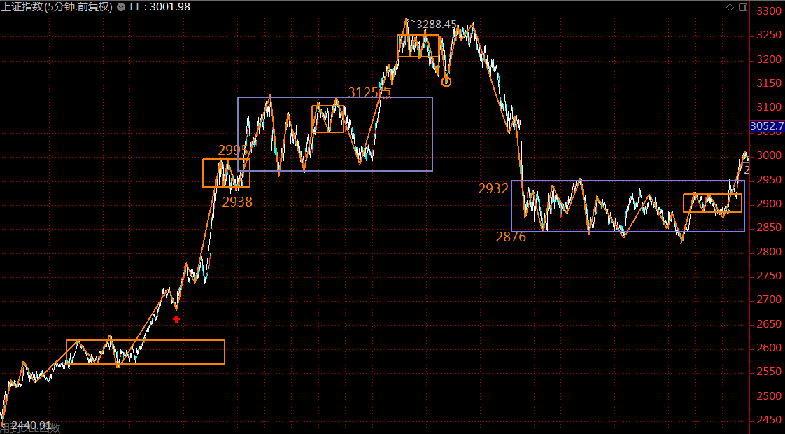 下圖為上證指數(shù)五分鐘級(jí)別走勢(shì)結(jié)構(gòu)。目前已正式突破5月6日開始構(gòu)建的三十分鐘中樞,目前在5分鐘的上漲趨勢(shì)中,未有結(jié)束的征兆,投資者宜全力做多,直至出現(xiàn)五分鐘上漲趨勢(shì)背馳為止,按壓力位看,大約在3050點(diǎn)附近。風(fēng)險(xiǎn)控制線2932點(diǎn)。