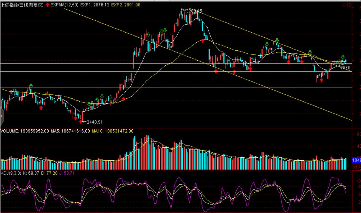 技術面:短期受阻回落,滬綜指2900點上方壓力顯現(xiàn),日線KDJ高位死叉、預計本周股指震蕩回調(diào);滬綜指2854點一線、創(chuàng)業(yè)板1580點一線構成支撐。