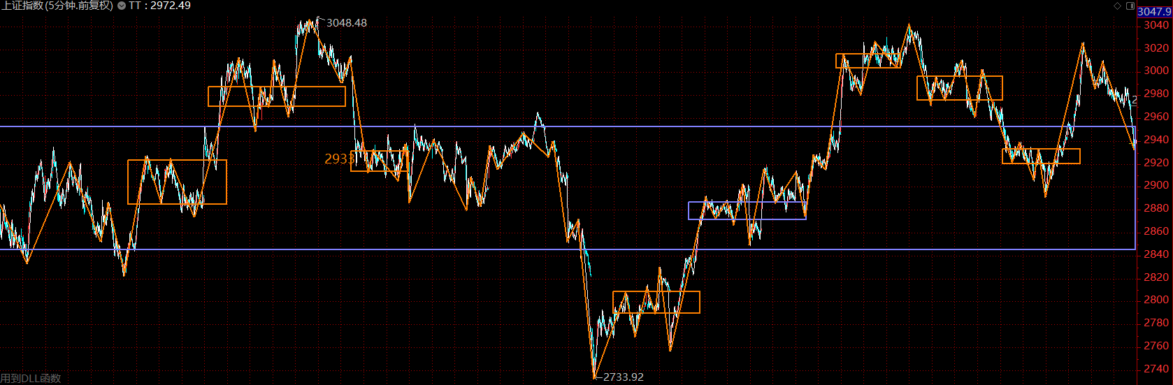 結(jié)構(gòu)上看,上證指數(shù)已跌回了大中樞內(nèi)部,市場(chǎng)情況不樂觀,大概率已經(jīng)確認(rèn)上周一的高點(diǎn)為第二類賣點(diǎn)。那么這里應(yīng)該轉(zhuǎn)向防守為主,反彈中應(yīng)適度降低倉位,觀望等待。關(guān)注壓力位2970點(diǎn)附近,可據(jù)此高拋,靜待市場(chǎng)回落后再行布局。