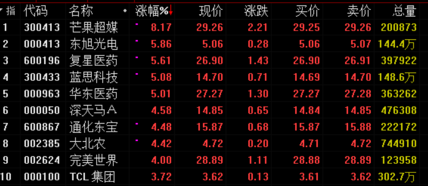 周四兩市股指縮量反彈,上證指數(shù)收盤(pán)漲0.11點(diǎn),報(bào)2978.71點(diǎn);深證成指漲0.57%報(bào)9917.49點(diǎn);創(chuàng)業(yè)板指漲0.74%報(bào)1715.58點(diǎn)。兩市成交額不足3989億,環(huán)比減少587億元,創(chuàng)階段新低;北向資金凈流入21.09億元,連續(xù)11日凈流入,累計(jì)凈流入近373億元;盤(pán)面看光刻膠、養(yǎng)殖、險(xiǎn)資舉牌、科創(chuàng)板漲幅居前,軍工、黃金板塊跌幅居前。