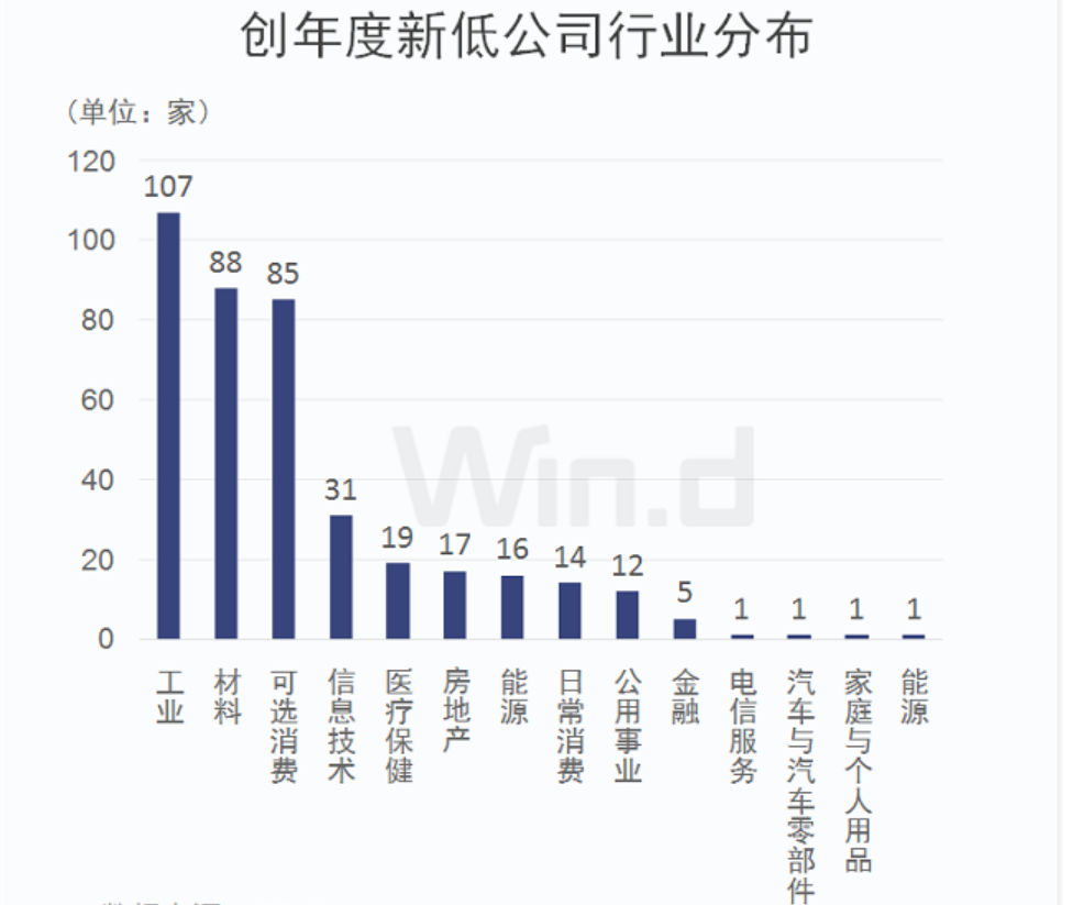 Wind統(tǒng)計顯示,有395家公司近3日最低股價創(chuàng)今年以來新低。從相關(guān)公司行業(yè)分布來看,工業(yè)最多,有107家,材料和可選消費(fèi)均有超過80家??梢?,雖然股指整體上漲,但傳統(tǒng)工業(yè)、材料領(lǐng)域投資者普遍不太看好。