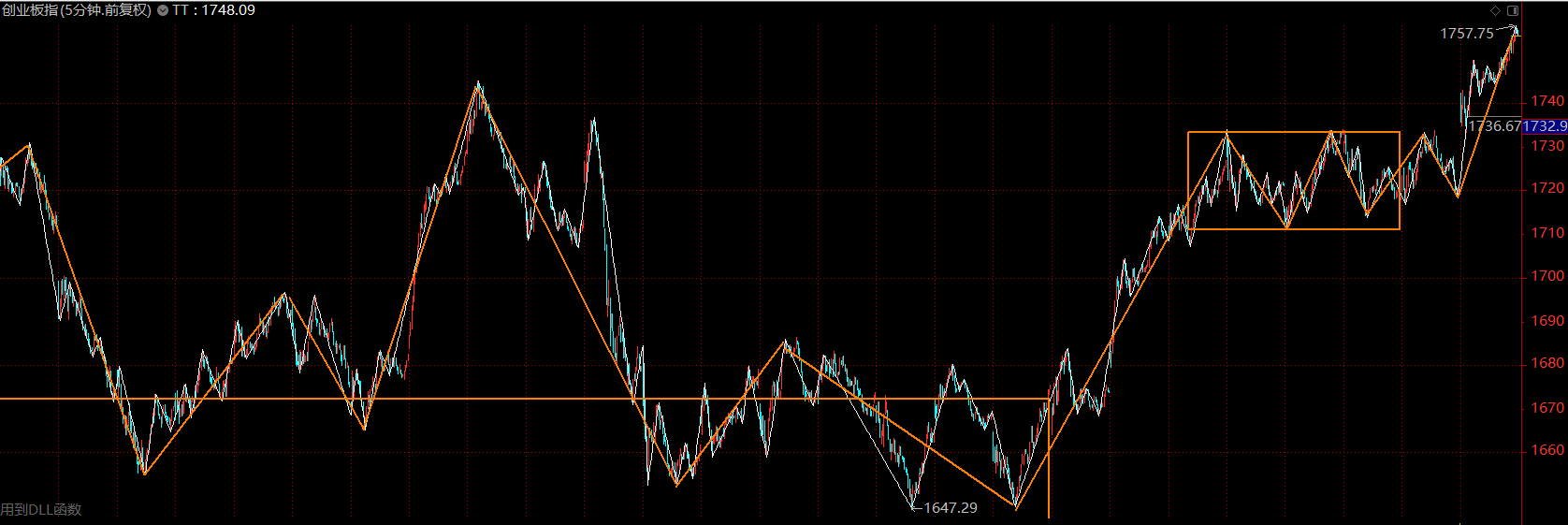 創(chuàng)業(yè)板本周創(chuàng)下八個月新高,完成了歐奈爾杯柄的一次突破,下一步要面臨1792點的前高大壓力位。日K線看,這個位置需要橫盤整固一段時間,同時也利于構(gòu)建下方中樞的第三類買點。小級別看,同樣是運行良好的多頭趨勢,目前在背馳段里,本周初的回踩只要不跌破1735點,均可以安心持股待漲。