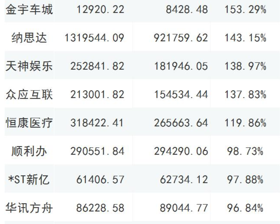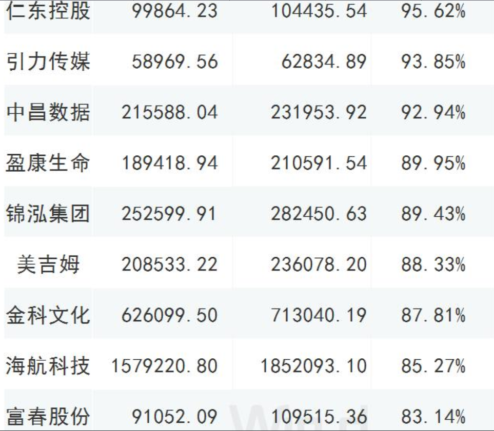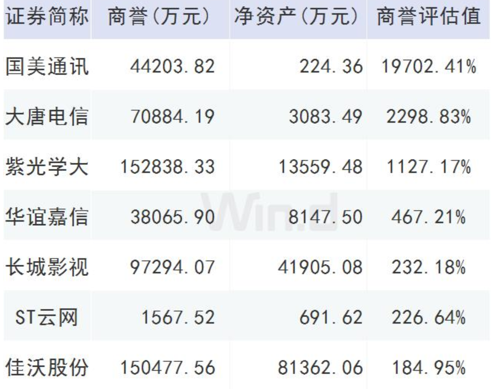 截至2019年三季報商譽占凈資產比重大于70%的公司,共有46家;12家的比值超過了百分百,以下列舉部分超過80%的公司;謹慎年終商譽減值風險爆發(fā);
