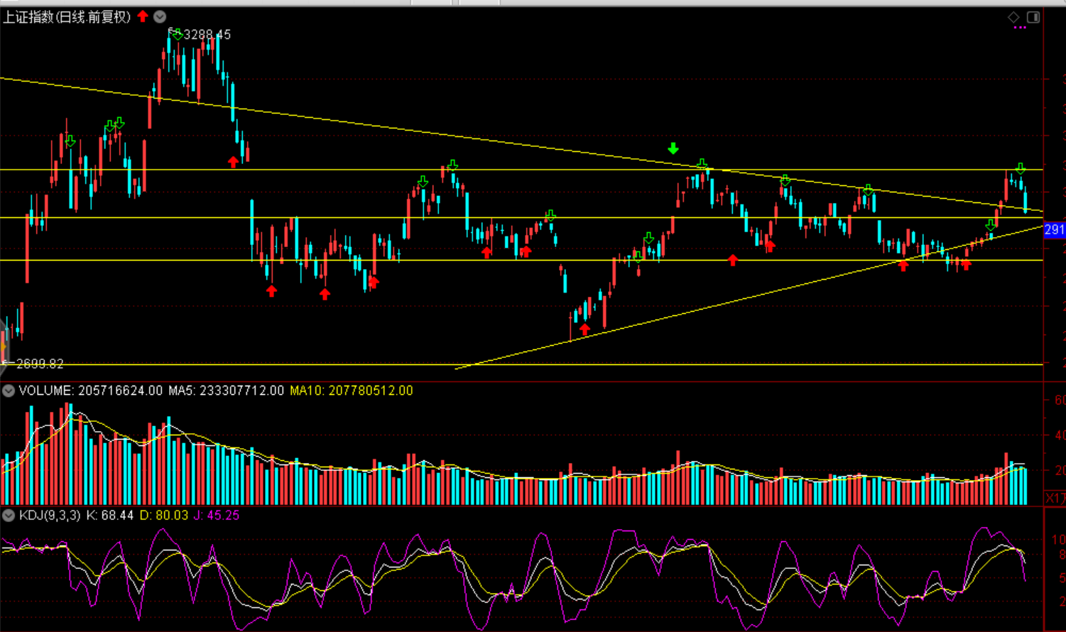 技術面:短期看滬綜指2950點一線面臨爭奪,2980點一線構成反壓;今日早盤如先探底1--2小時,則短期面臨一定技術性反抽;如早盤先反彈則有可能沖高回落走勢。