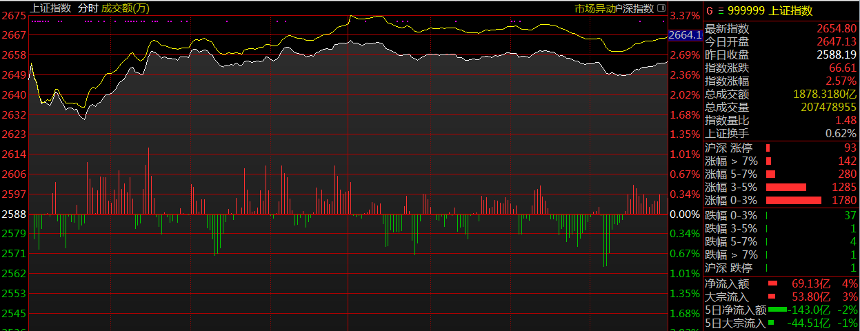 在岸人民幣收復6.9關口漲超600點