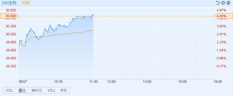招商銀行(03968)上周五(8月24日)公布中期業(yè)績,股東應(yīng)占凈利同比增14%至447.56億元人民幣,截至11時(shí)35分,漲4.45%,報(bào)價(jià)30.5港元,成交額5.78億。
