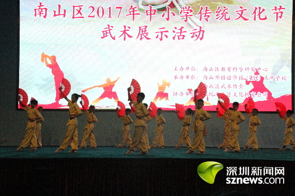 南山區(qū)2017年中小學(xué)傳統(tǒng)文化節(jié)武術(shù)展示活動(dòng)由南山區(qū)教育科學(xué)研究中心主辦,南山外國(guó)語(yǔ)學(xué)校(集團(tuán))大沖學(xué)校和南山區(qū)武術(shù)協(xié)會(huì)承辦。南山區(qū)教育科學(xué)研究中心主任余耀賢介紹,為進(jìn)一步弘揚(yáng)優(yōu)秀中華傳統(tǒng)文化,落實(shí)立德樹人的根本任務(wù),南山區(qū)教育局舉行了首屆傳統(tǒng)文化節(jié)活動(dòng),開展了經(jīng)典詩(shī)詞特色展演、中小學(xué)書法大賽、中國(guó)戲曲和民族樂器比賽、中小學(xué)生圍棋大賽、傳統(tǒng)文化沙龍和專家報(bào)告等形式多樣的活動(dòng)。