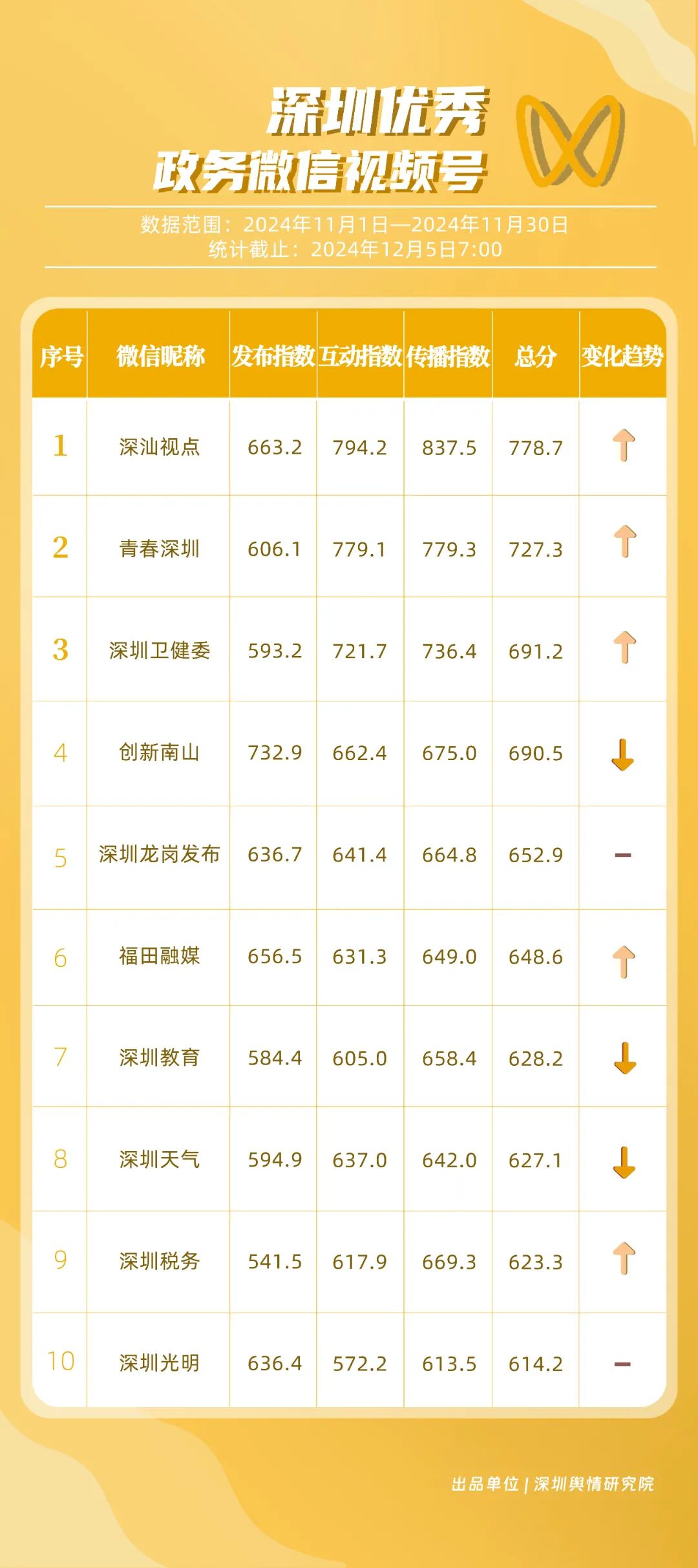 《深圳優(yōu)秀政務(wù)新媒體矩陣》2024年11月榜單揭曉,讓我們一同關(guān)注,哪些新媒體矩陣能夠憑借優(yōu)異表現(xiàn)嶄露新姿,成為加速政務(wù)傳播與服務(wù)創(chuàng)新發(fā)展的先鋒。